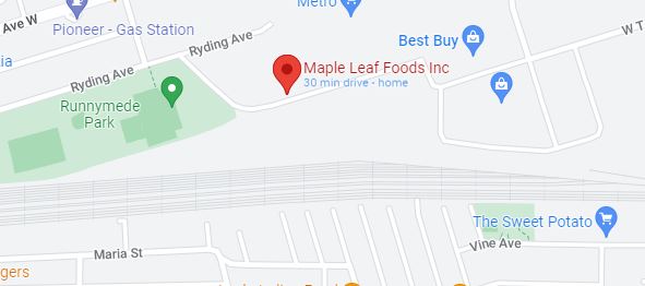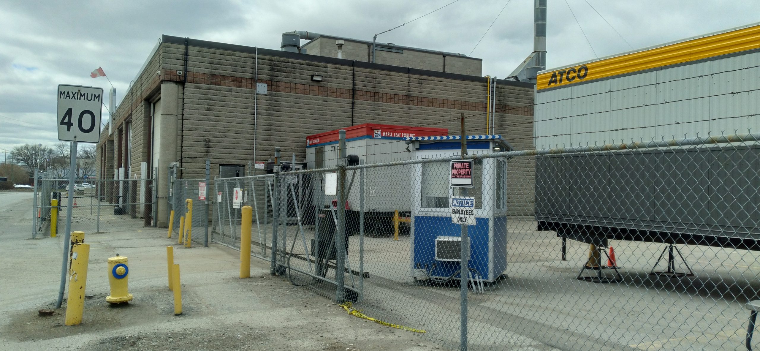 Below are photos of Maple Leafs other site next to the Ryding Rd site which is is 100 Ethel Ave. This site is a large chicken processing site.