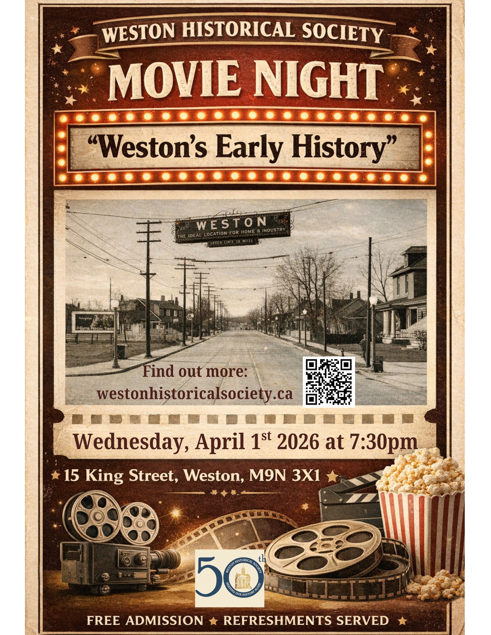 Weston Historical Society – Movie Night, Movie Night Wed. April 1st 2026, 7:30pm 15 King St, Weston.