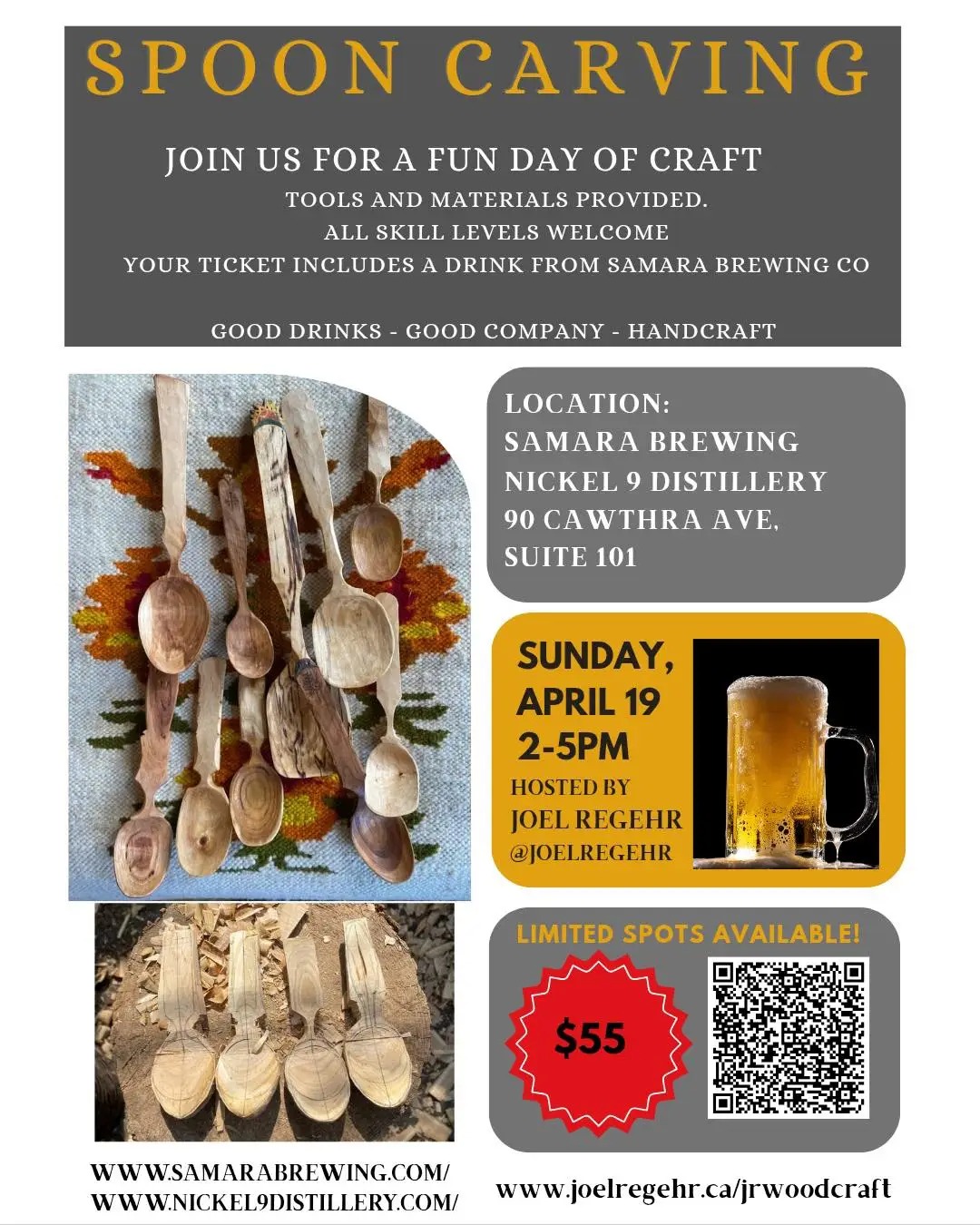 Carve a Spoon! – Samara Brewing Co. 90 Cawthra Ave – Sun, April 19  •  2 PM – 5 PM